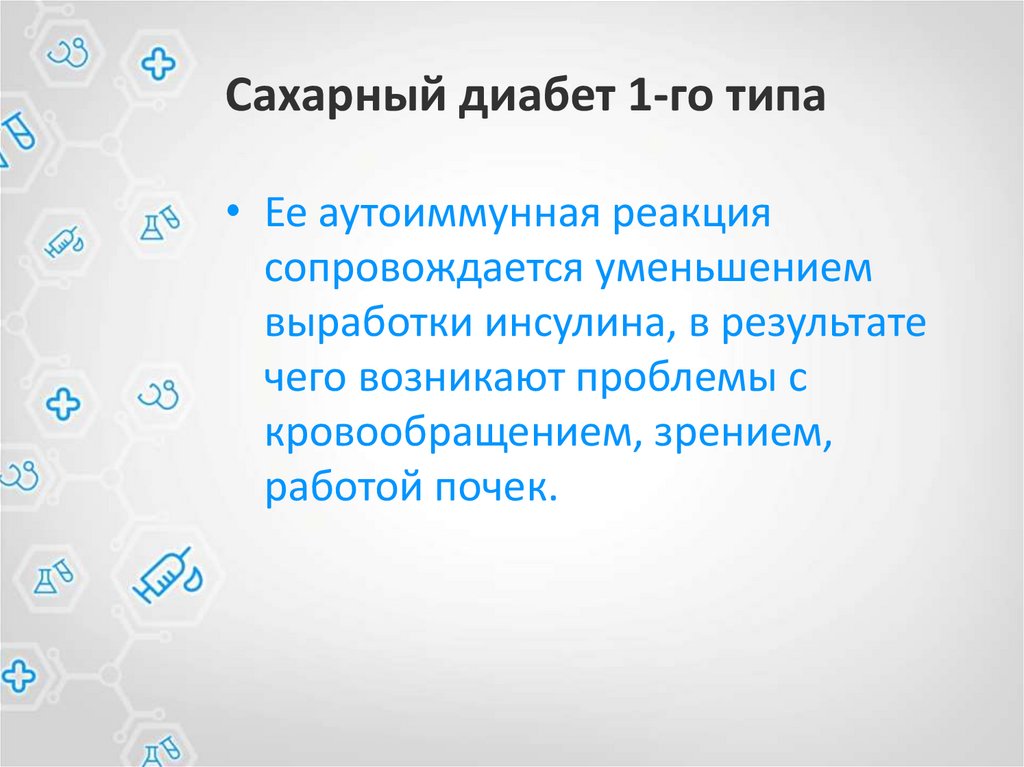 Сахарный диабет 1-го типа• Ее аутоиммунная реакция