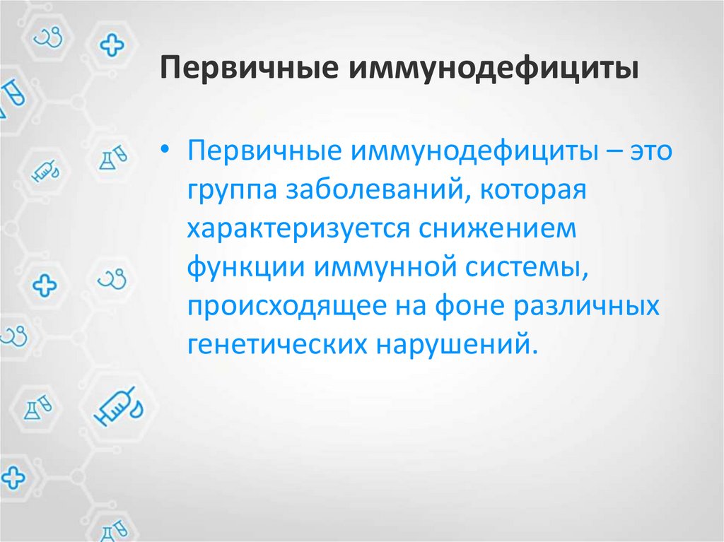Первичные иммунодефициты• Первичные иммунодефициты – это