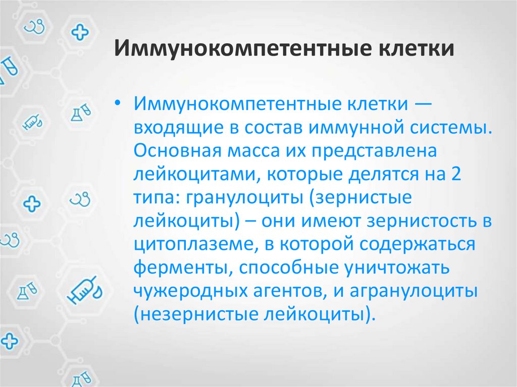 Иммунокомпетентные клетки• Иммунокомпетентные клетки —