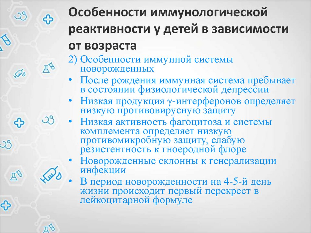 Особенности иммунологическойреактивности у детей в зависимости