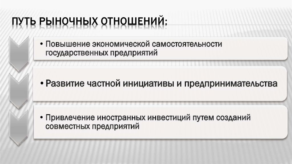 ПУТЬ РЫНОЧНЫХ ОТНОШЕНИЙ:• Повышение экономической самостоятельности