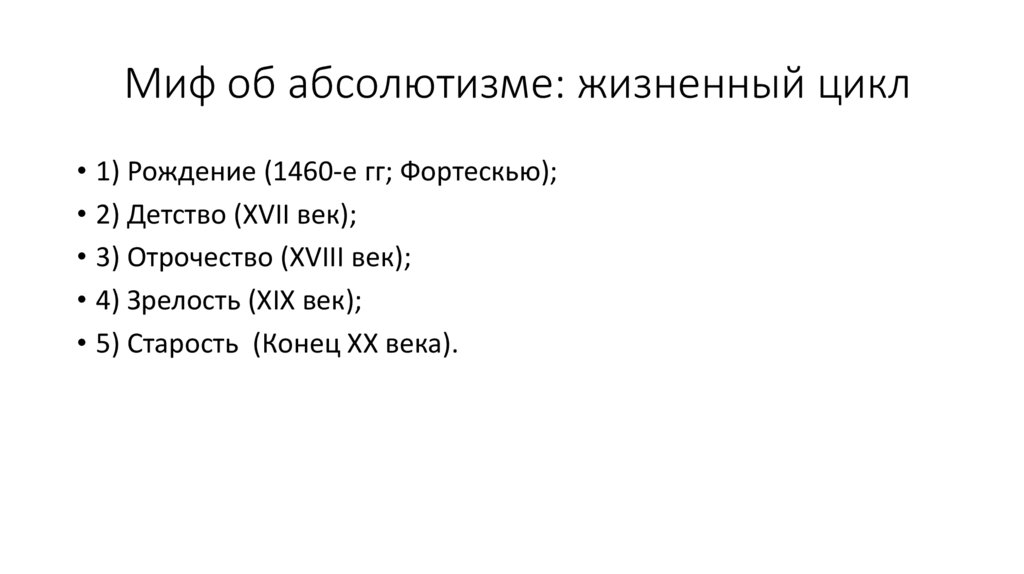 Миф об абсолютизме: жизненный цикл• 1) Рождение (1460-е гг; Фортескью);