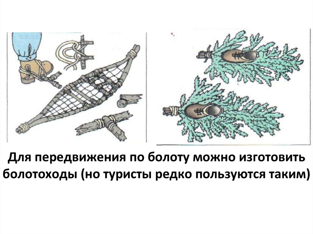 Для передвижения по болоту можно изготовитьболотоходы (но туристы редко пользуются таким)