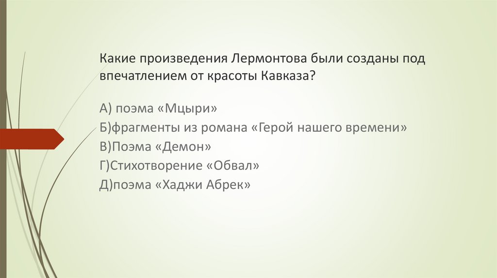 Какие произведения Лермонтова были созданы подвпечатлением от красоты Кавказа?