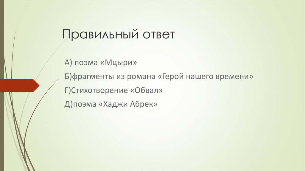Правильный ответА) поэма «Мцыри»