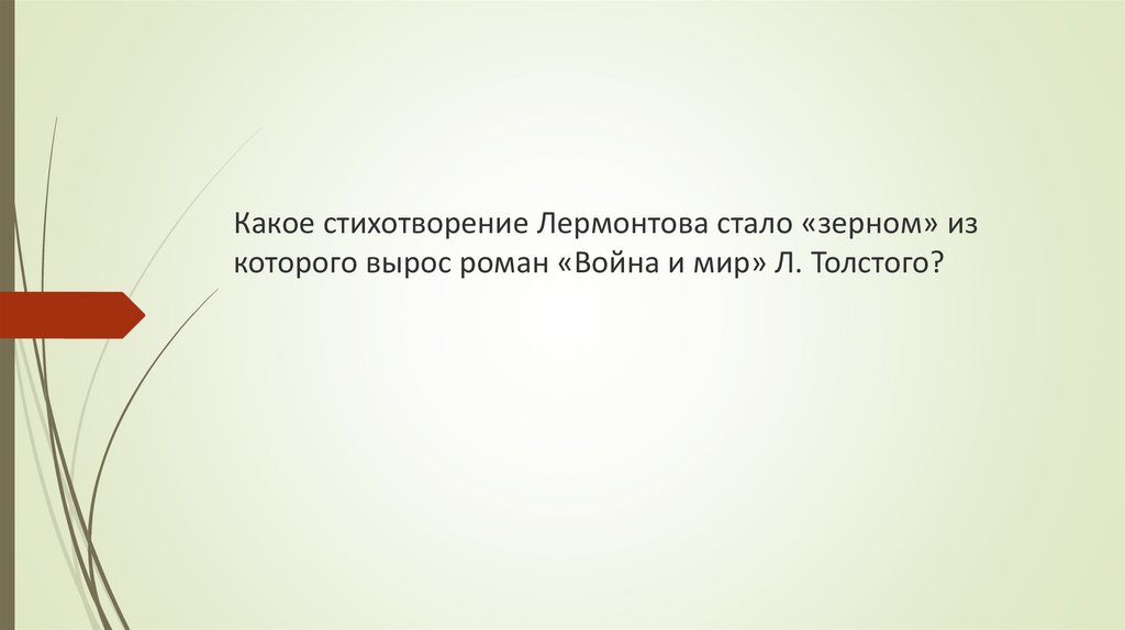 Какое стихотворение Лермонтова стало «зерном» изкоторого вырос роман «Война и мир» Л. Толстого?
