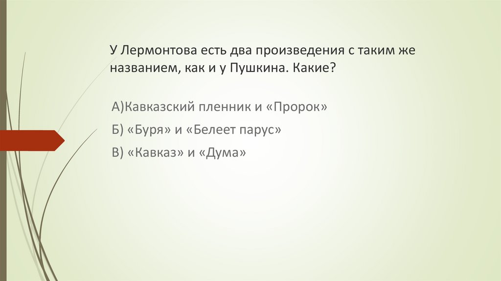 У Лермонтова есть два произведения с таким женазванием, как и у Пушкина. Какие?