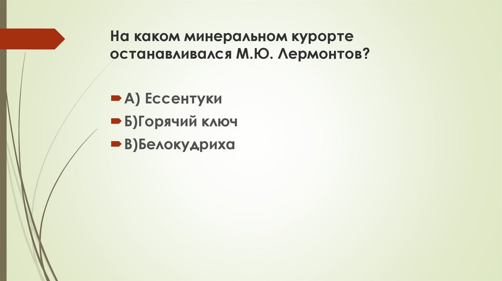 На каком минеральном курортеостанавливался М.Ю. Лермонтов?