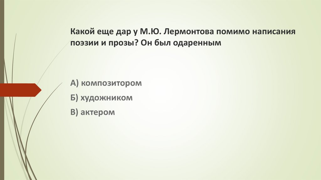 Какой еще дар у М.Ю. Лермонтова помимо написанияпоэзии и прозы? Он был одаренным