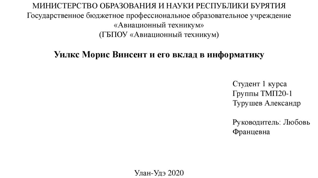 МИНИСТЕРСТВО ОБРАЗОВАНИЯ И НАУКИ РЕСПУБЛИКИ БУРЯТИЯГосударственное бюджетное профессиональное образовательное учреждение