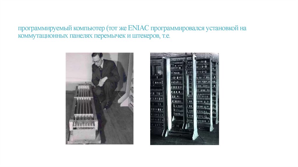 программируемый компьютер (тот же ENIAC программировался установкой накоммутационных панелях перемычек и штекеров, т.е.
