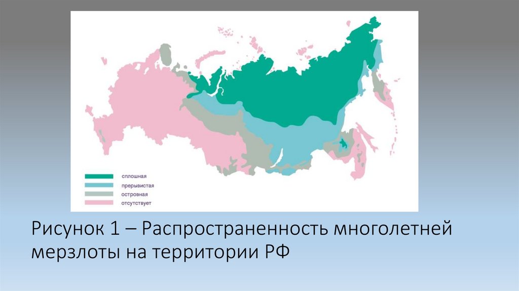 Рисунок 1 – Распространенность многолетнеймерзлоты на территории РФ