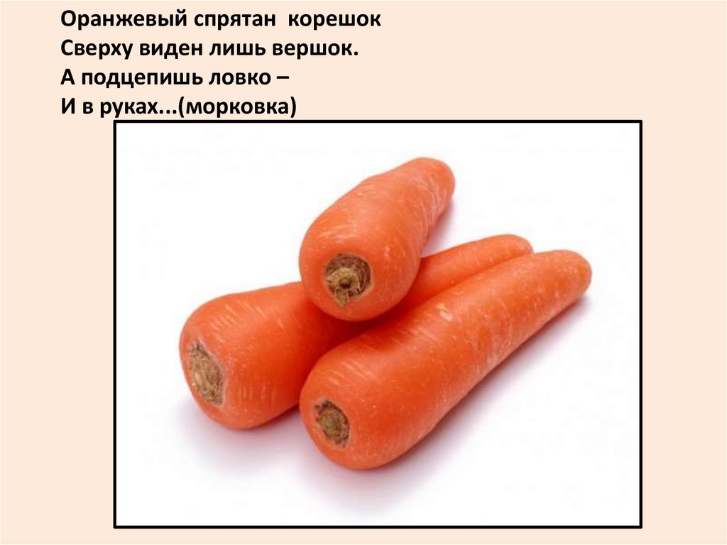 Оранжевый спрятан корешокСверху виден лишь вершок.