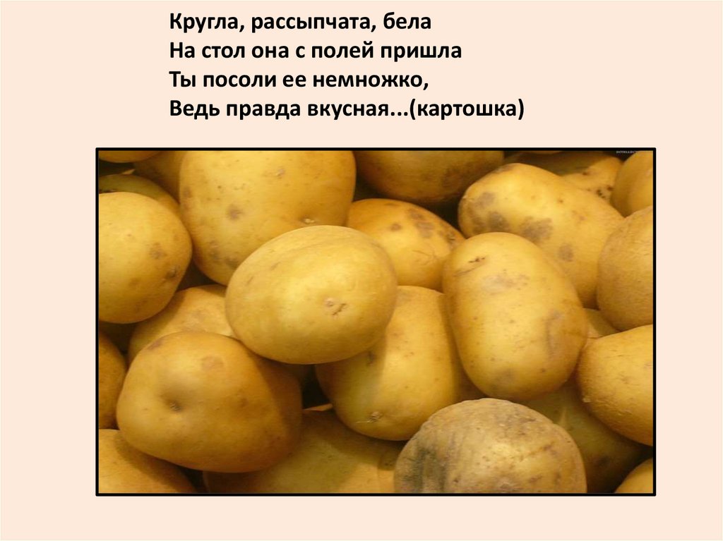 Кругла, рассыпчата, белаНа стол она с полей пришла