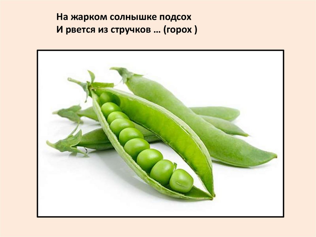 На жарком солнышке подсохИ рвется из стручков … (горох )