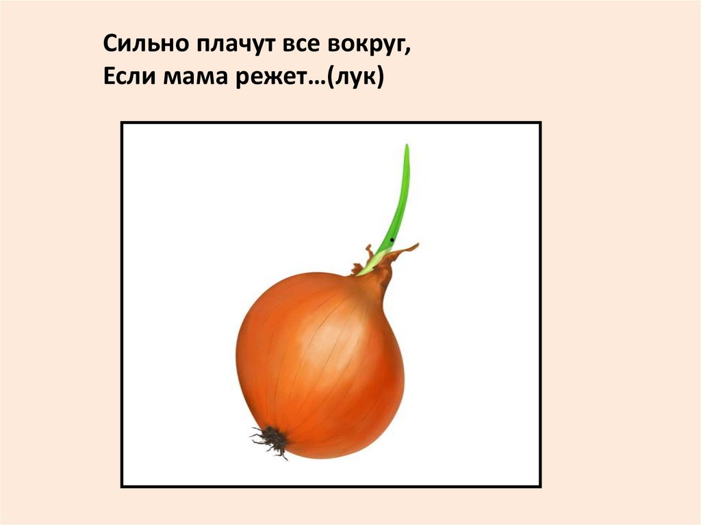 Сильно плачут все вокруг,Если мама режет…(лук)