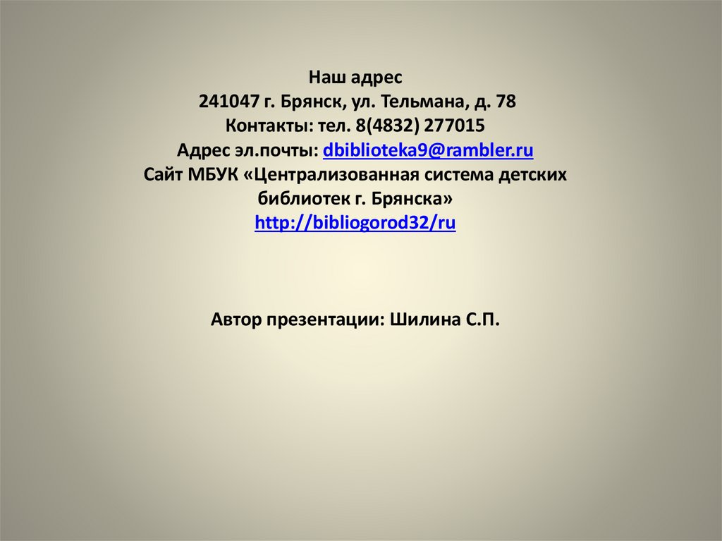 Адрес эл.почты: dbiblioteka9@rambler.ru
