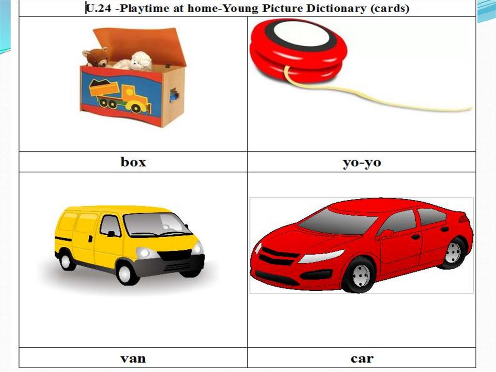 Practice with cardsWhat’s in the box? (Close eyes, touch, say “Let’s play with the….”)