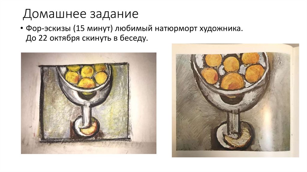 • Фор-эскизы (15 минут) любимый натюрморт художника.