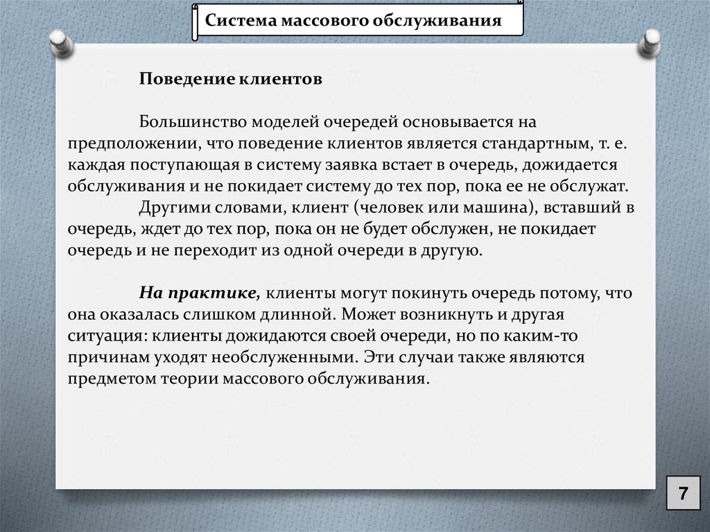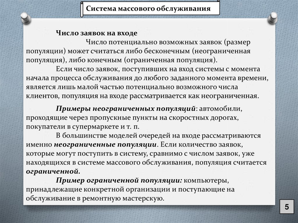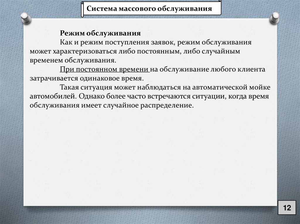 Система массового обслуживанияРежим поступления заявок в систему обслуживания
