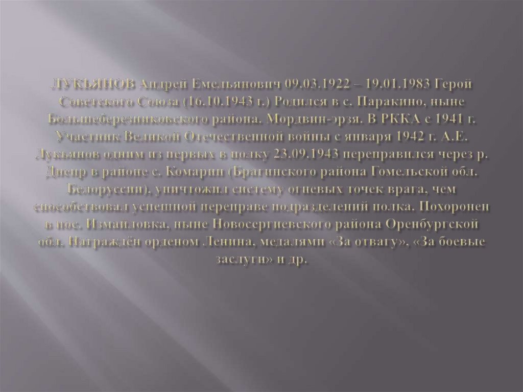 ЛЕМАЙКИН Иван Самсонович 16.11.1922 – 02.08.1992Герой Советского Союза (30.10.1943 г.) Родился в с.
