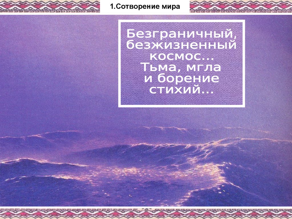 1.Сотворение мира12. Чампаз плывет по океану Вселенной на ладье