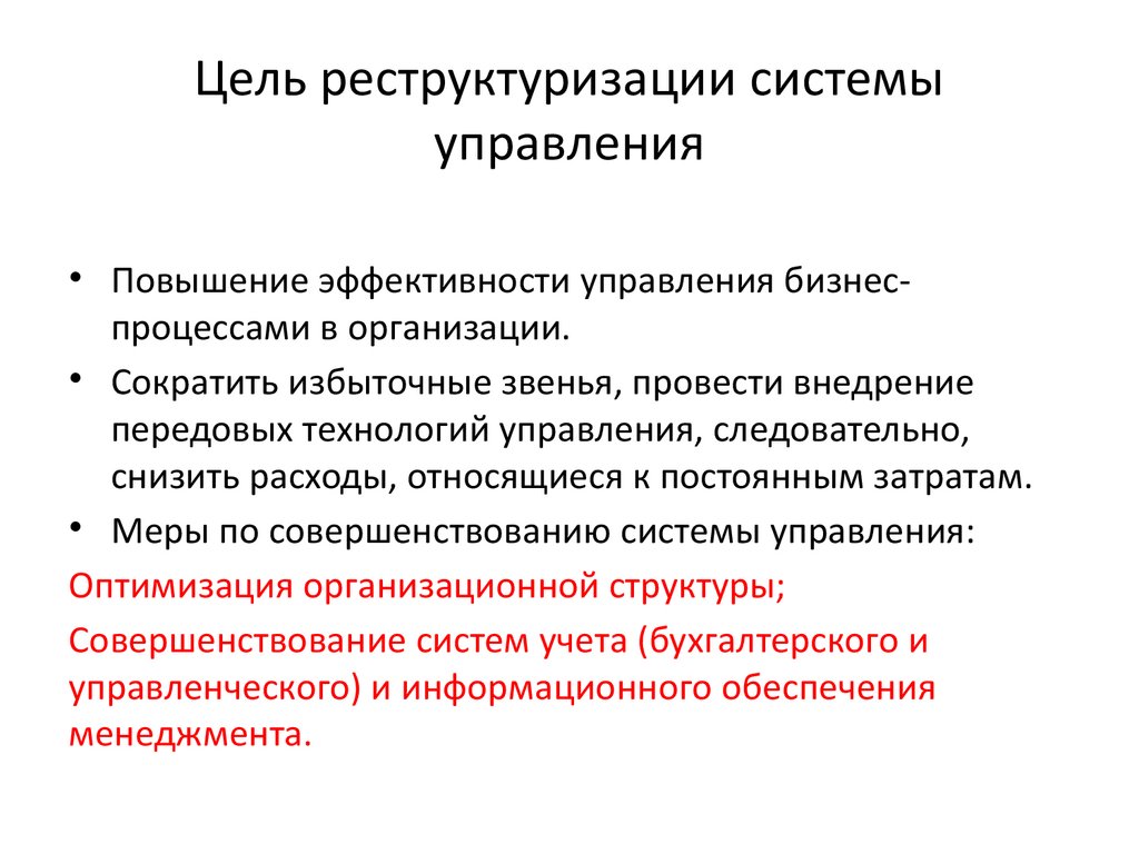 Цель реструктуризации системыуправления