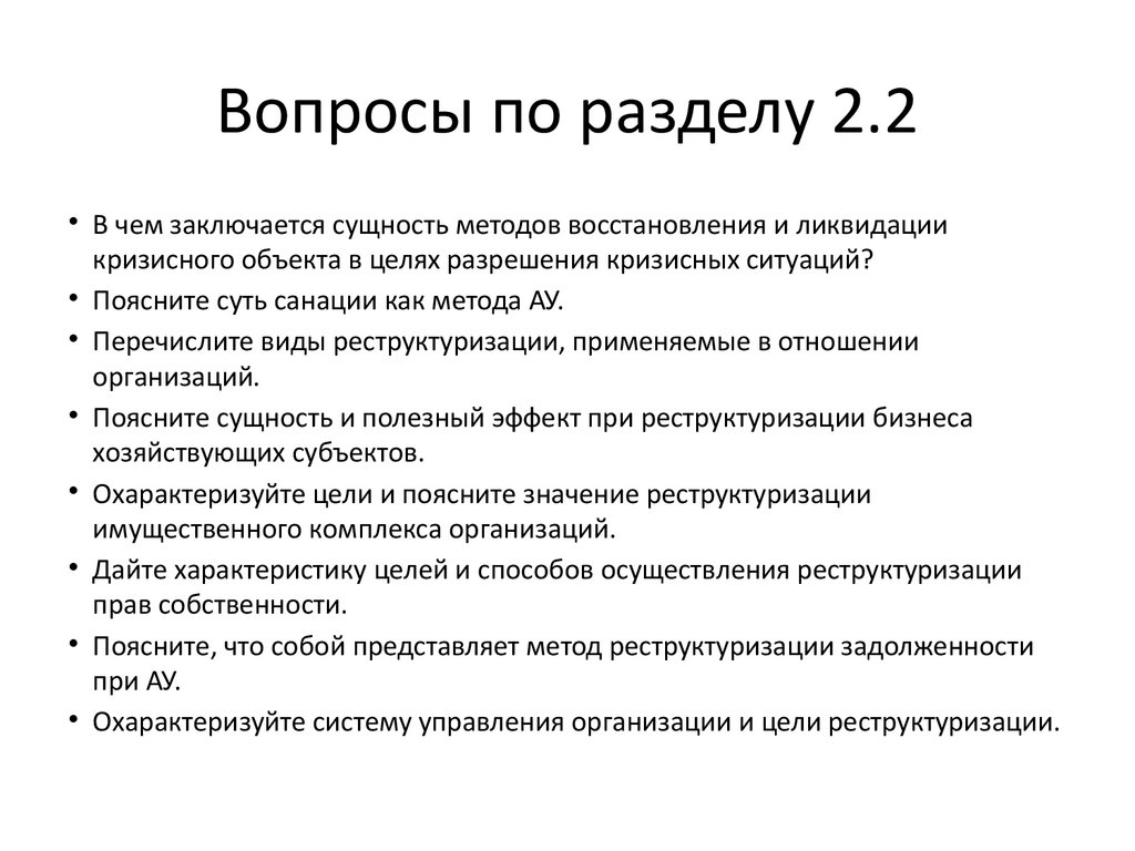 Вопросы по разделу 2.2• В чем заключается сущность методов восстановления и ликвидации