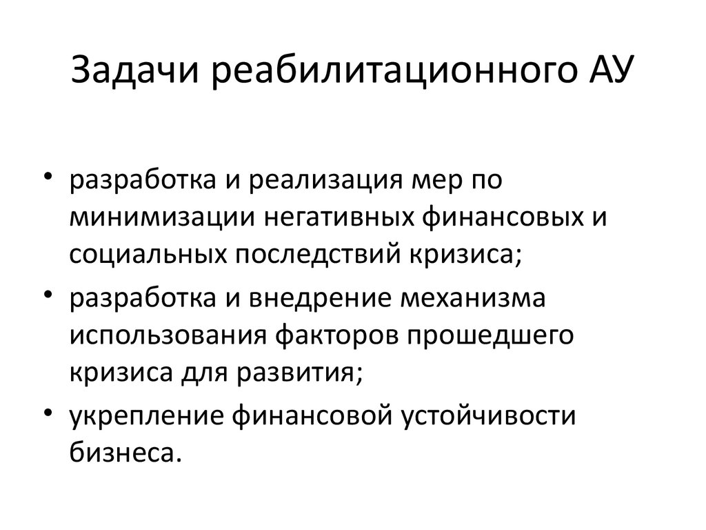 Задачи реабилитационного АУ• разработка и реализация мер по