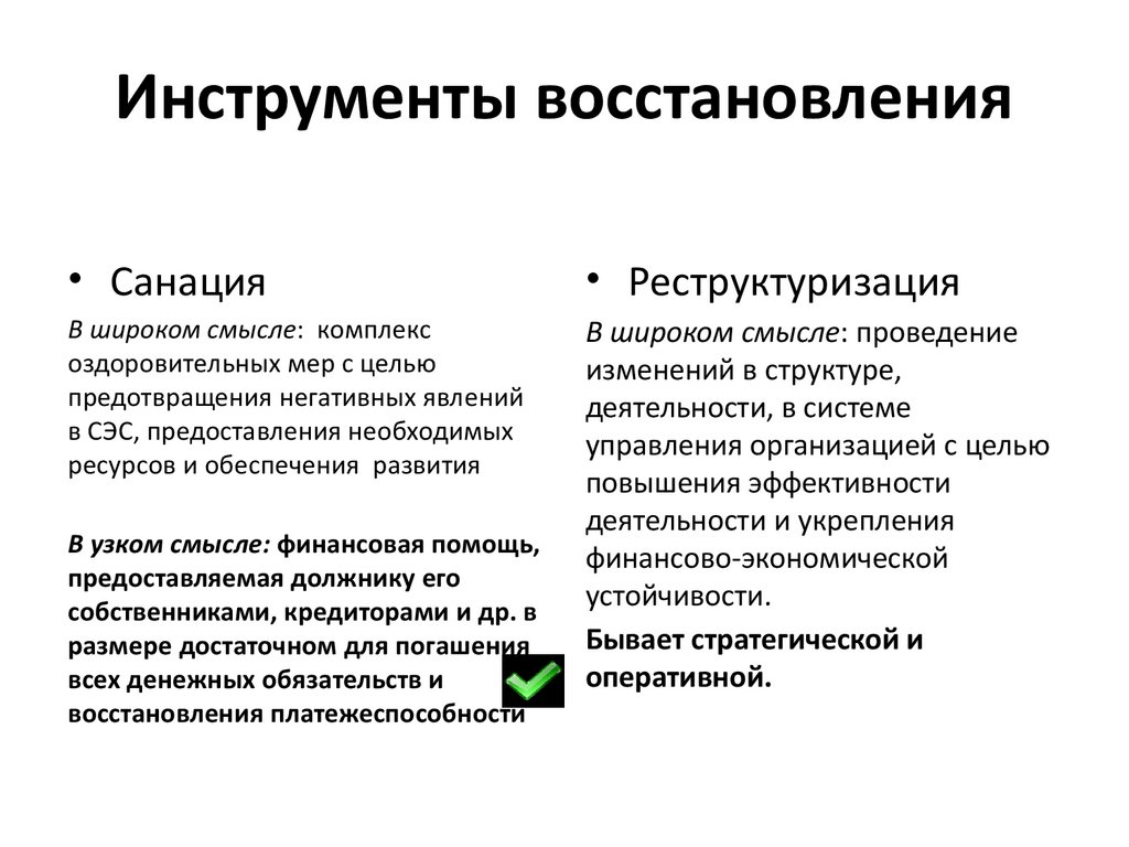 Инструменты восстановления• Санация