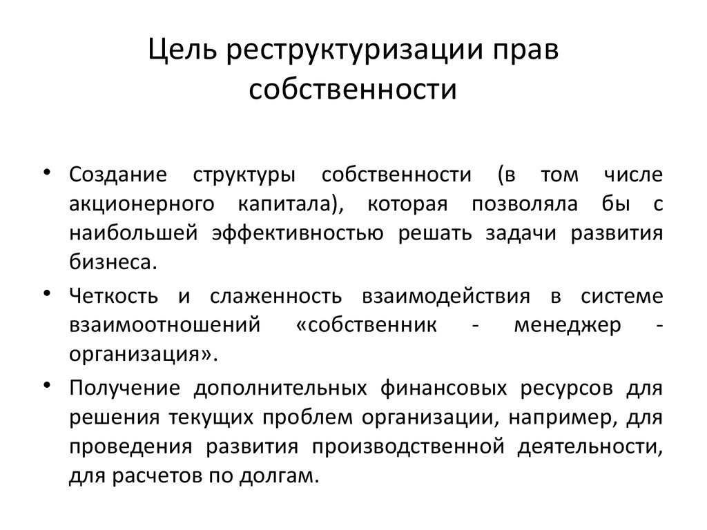 • Охарактеризуйте цели и поясните значение реструктуризации