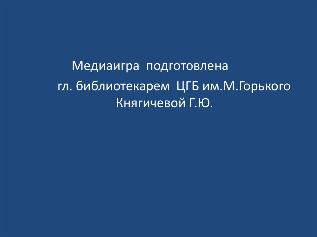 Медиаигра подготовленагл. библиотекарем ЦГБ им.М.Горького