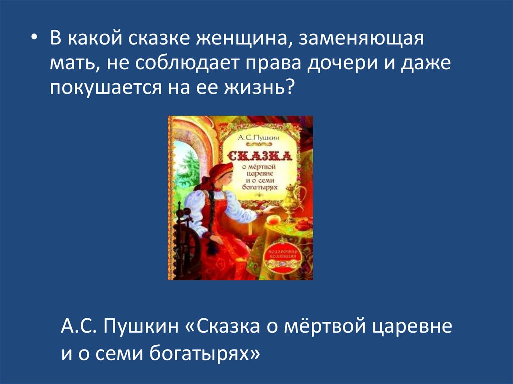 • В какой сказке женщина, заменяющаямать, не соблюдает права дочери и даже