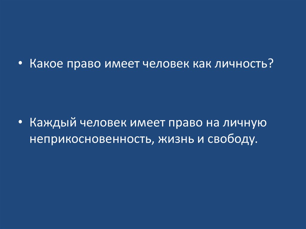 • Какое право имеет человек как личность?• Каждый человек имеет право на личную