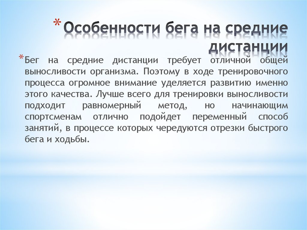 * Бег на средние дистанции*Особенности бега на средние дистанции