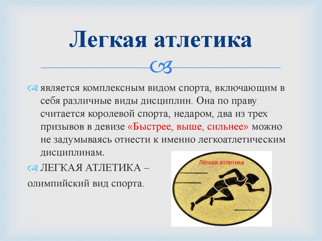 Легкая атлетикаявляется комплексным видом спорта, включающим в