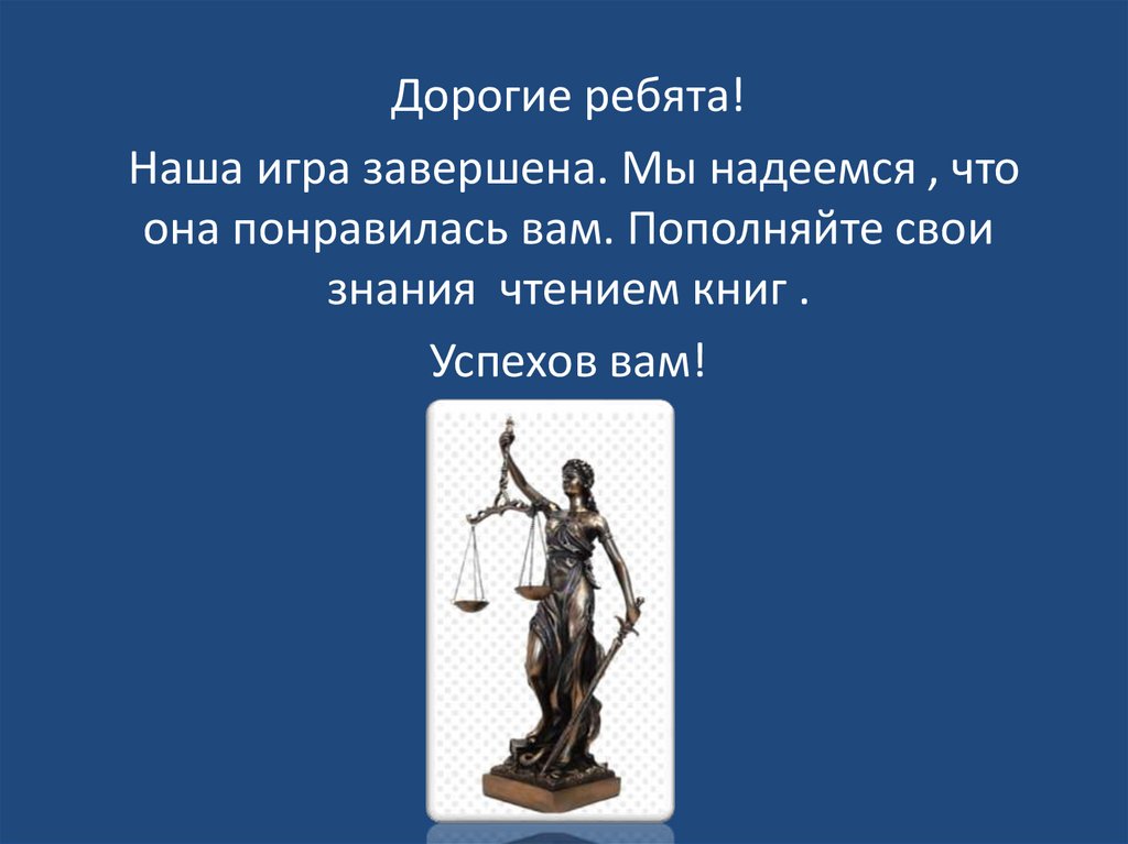 Дорогие ребята!Наша игра завершена. Мы надеемся , что