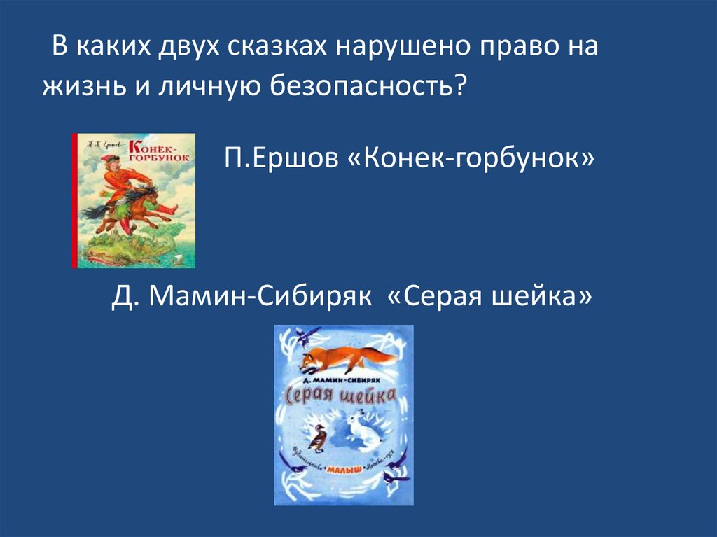 В каких двух сказках нарушено право нажизнь и личную безопасность?