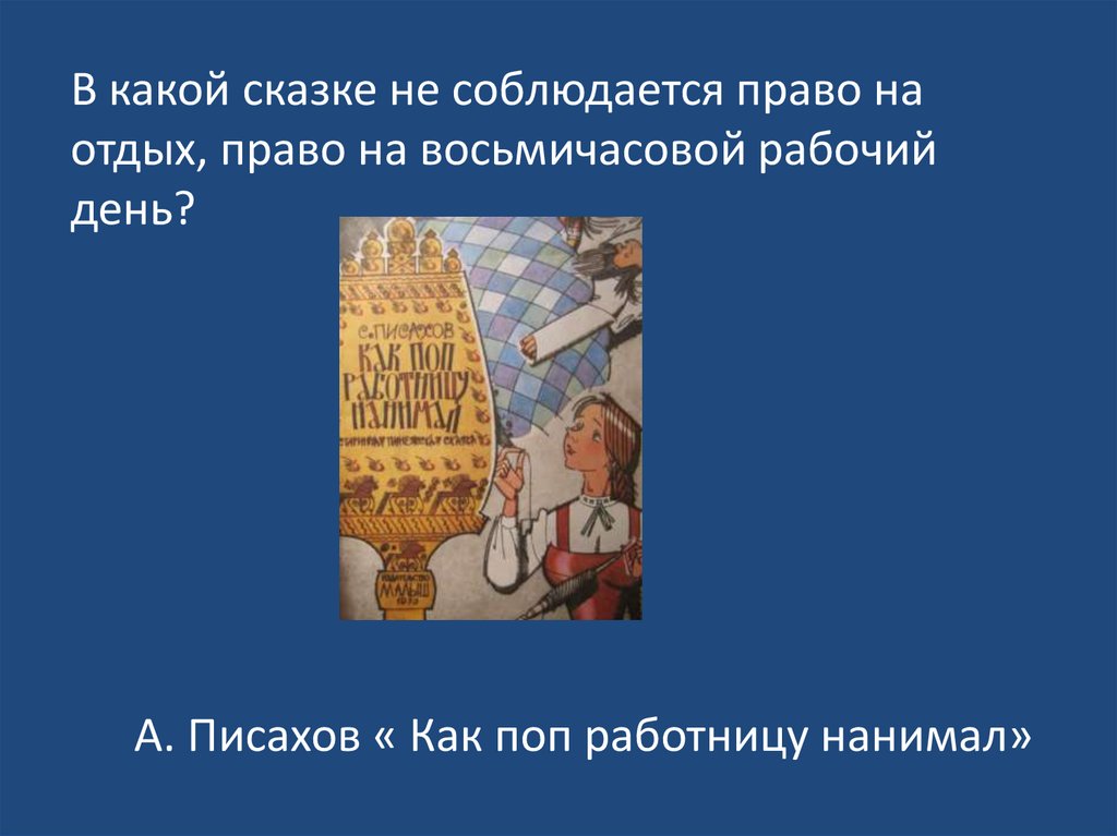 В какой сказке не соблюдается право наотдых, право на восьмичасовой рабочий