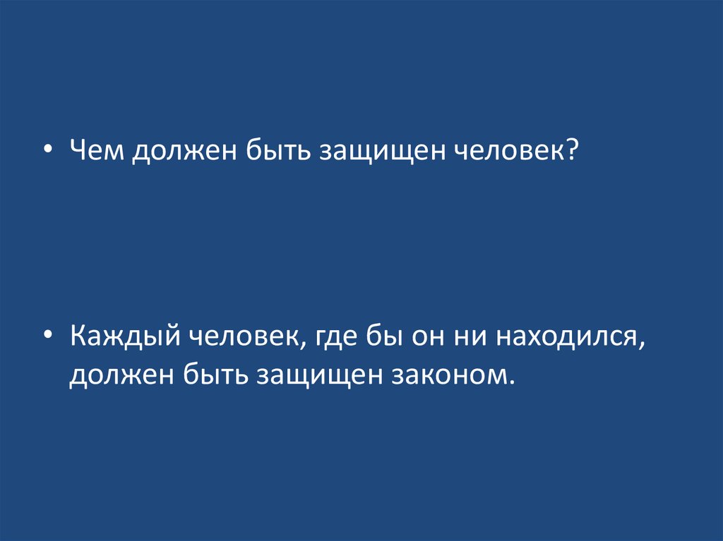 • Чем должен быть защищен человек?• Каждый человек, где бы он ни находился,