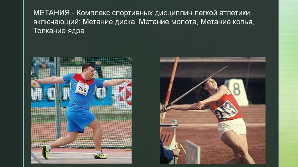 МЕТАНИЯ - Комплекс спортивных дисциплин легкой атлетики,включающий: Метание диска, Метание молота, Метание копья,
