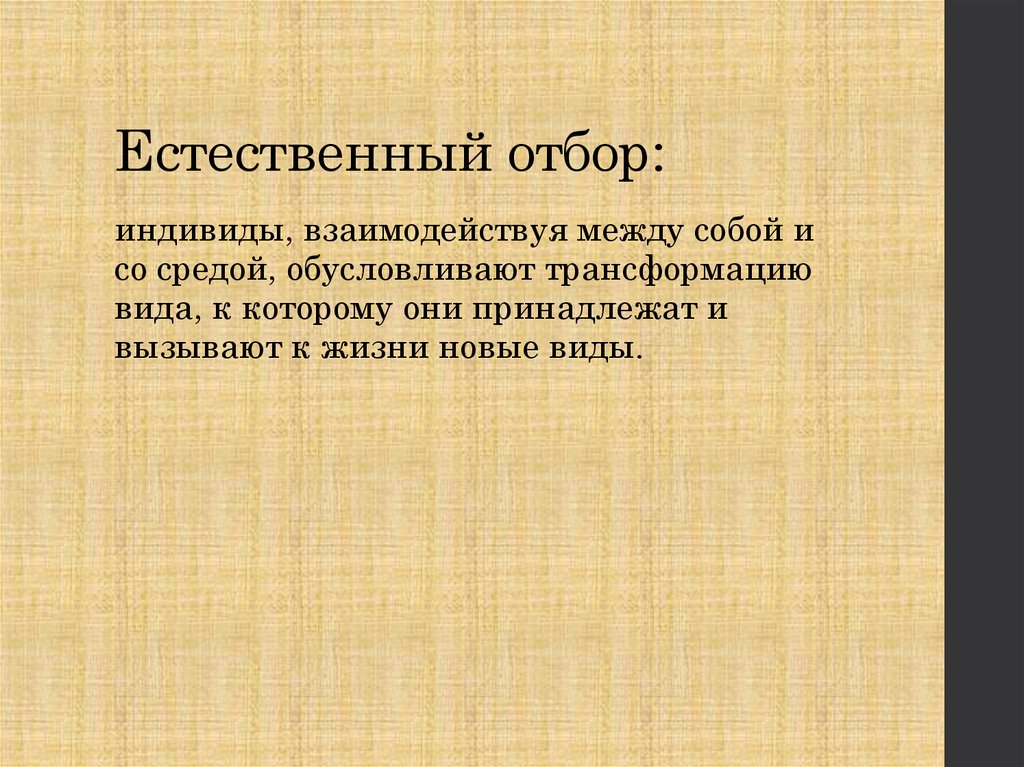 Естественный отбор:индивиды, взаимодействуя между собой и
