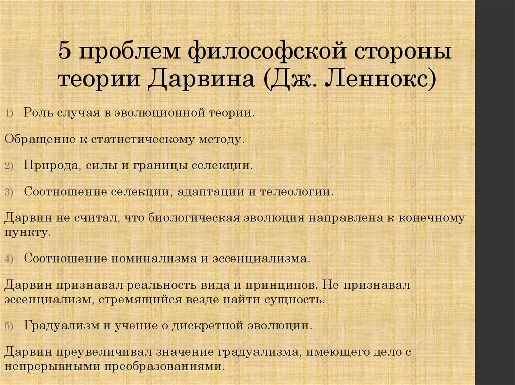 5 проблем философской сторонытеории Дарвина (Дж. Леннокс)