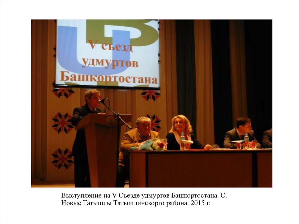 Выступление на V Съезде удмуртов Башкортостана. С.Новые Татышлы Татышлинскорго района. 2015 г.