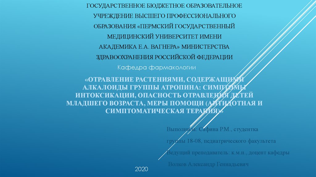 Ведущий преподаватель: к.м.н., доцент кафедры