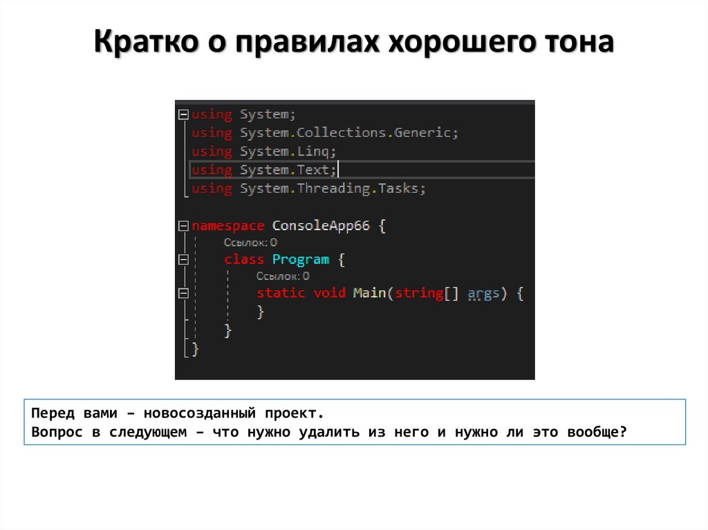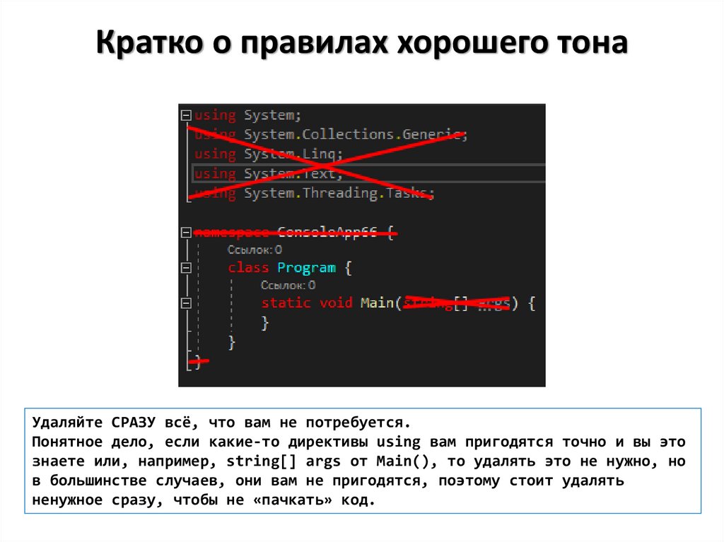 знаете или, например, string[] args от Main(), то удалять это не нужно, но