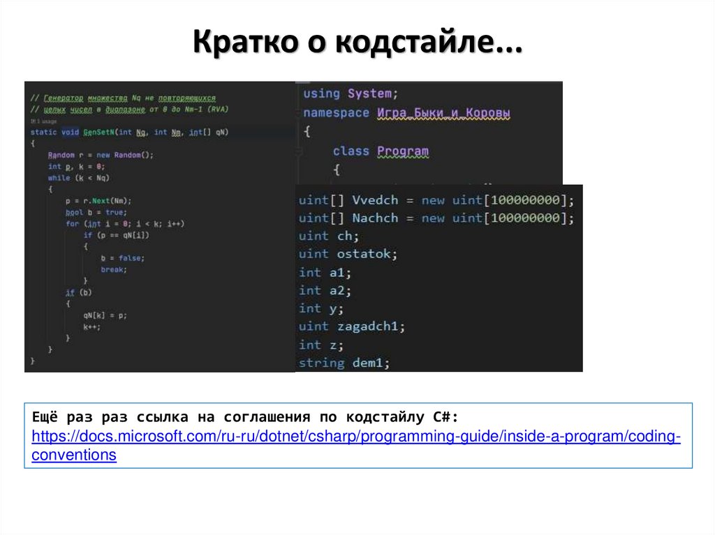 Кратко о кодстайле...Ещё раз раз ссылка на соглашения по кодстайлу C#: