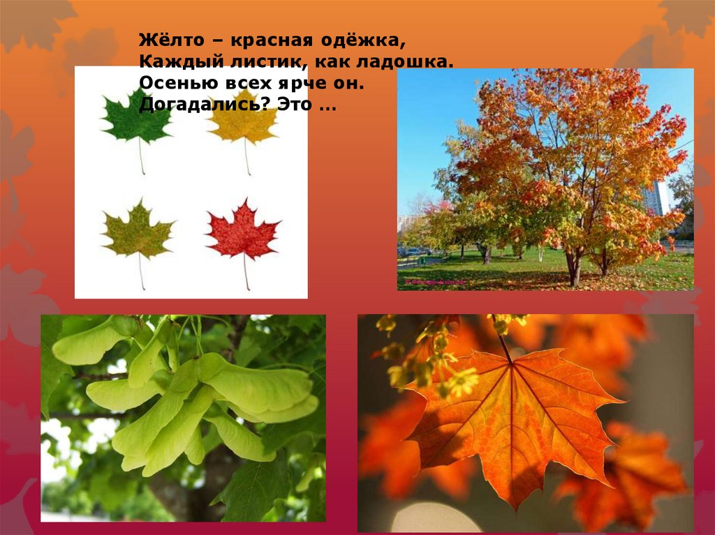Жёлто – красная одёжка,Каждый листик, как ладошка.