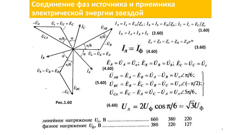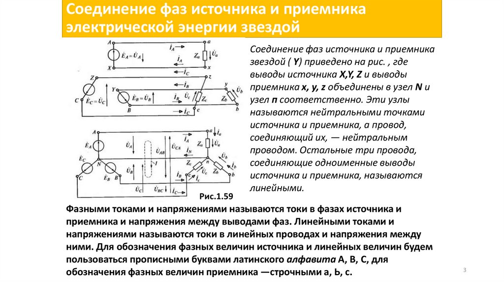 приемника и напряжения между выводами фаз. Линейными токами и