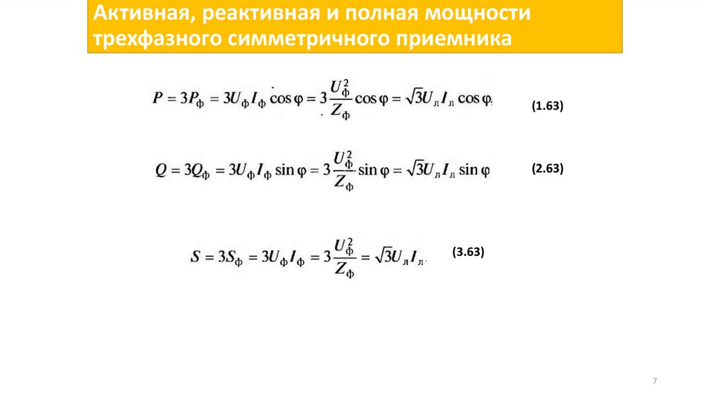 • Активная, реактивная и полная мощности трехфазного